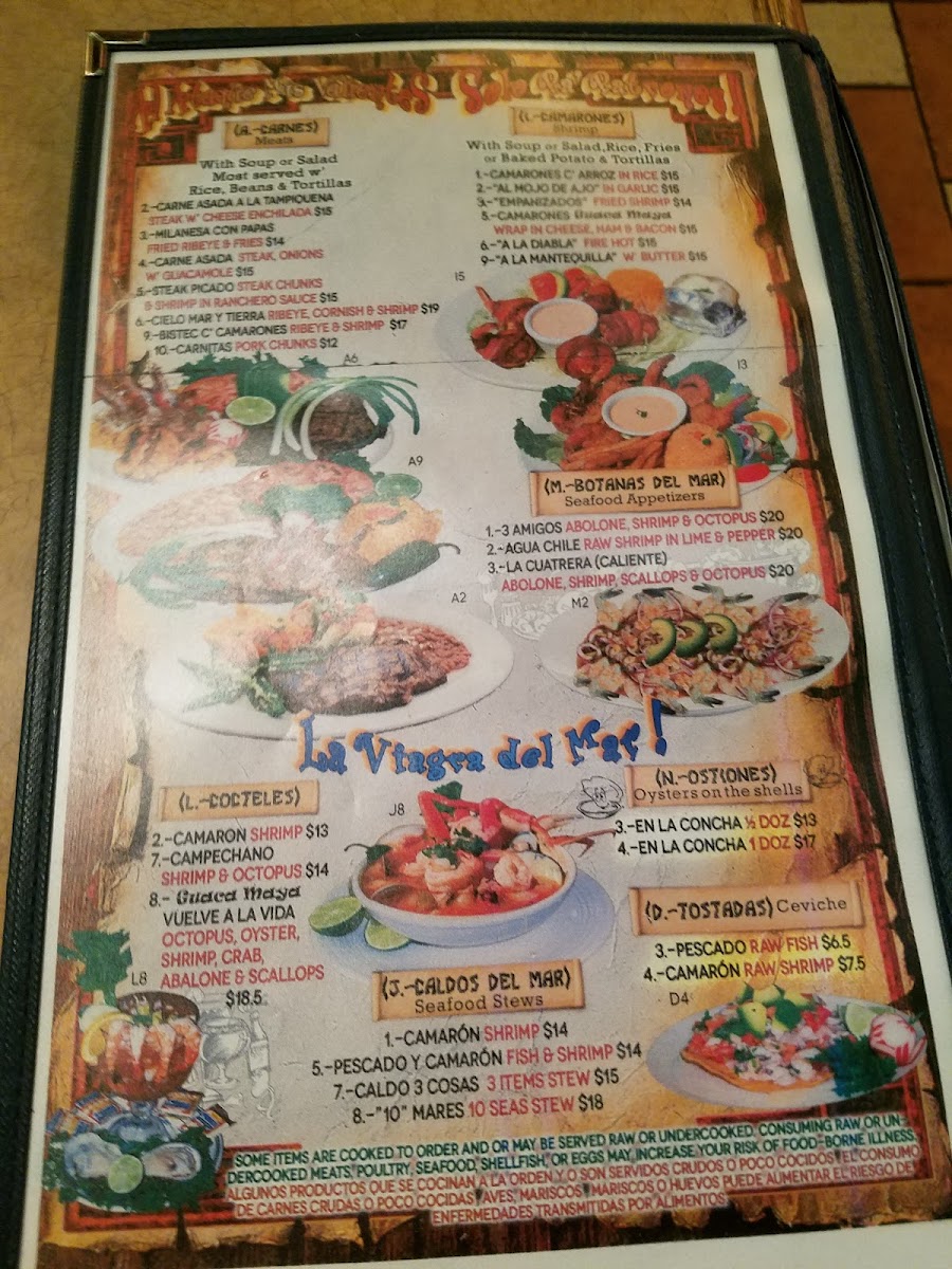 - Seafood and Meat Dishes: Options such as Torre de Camarones, Bistec con Camarones, and oysters provide seafood alternatives alongside classic meat dishes.