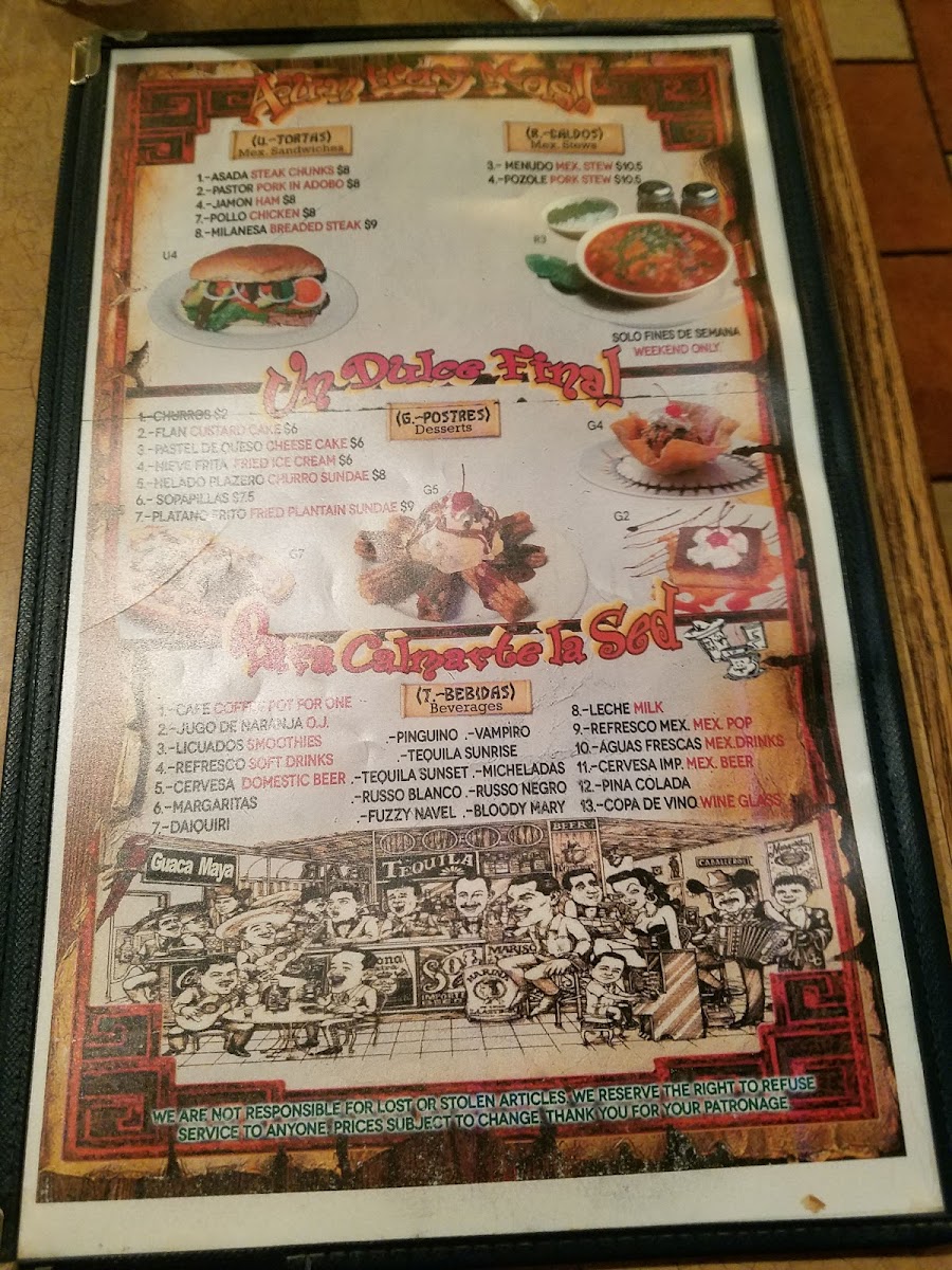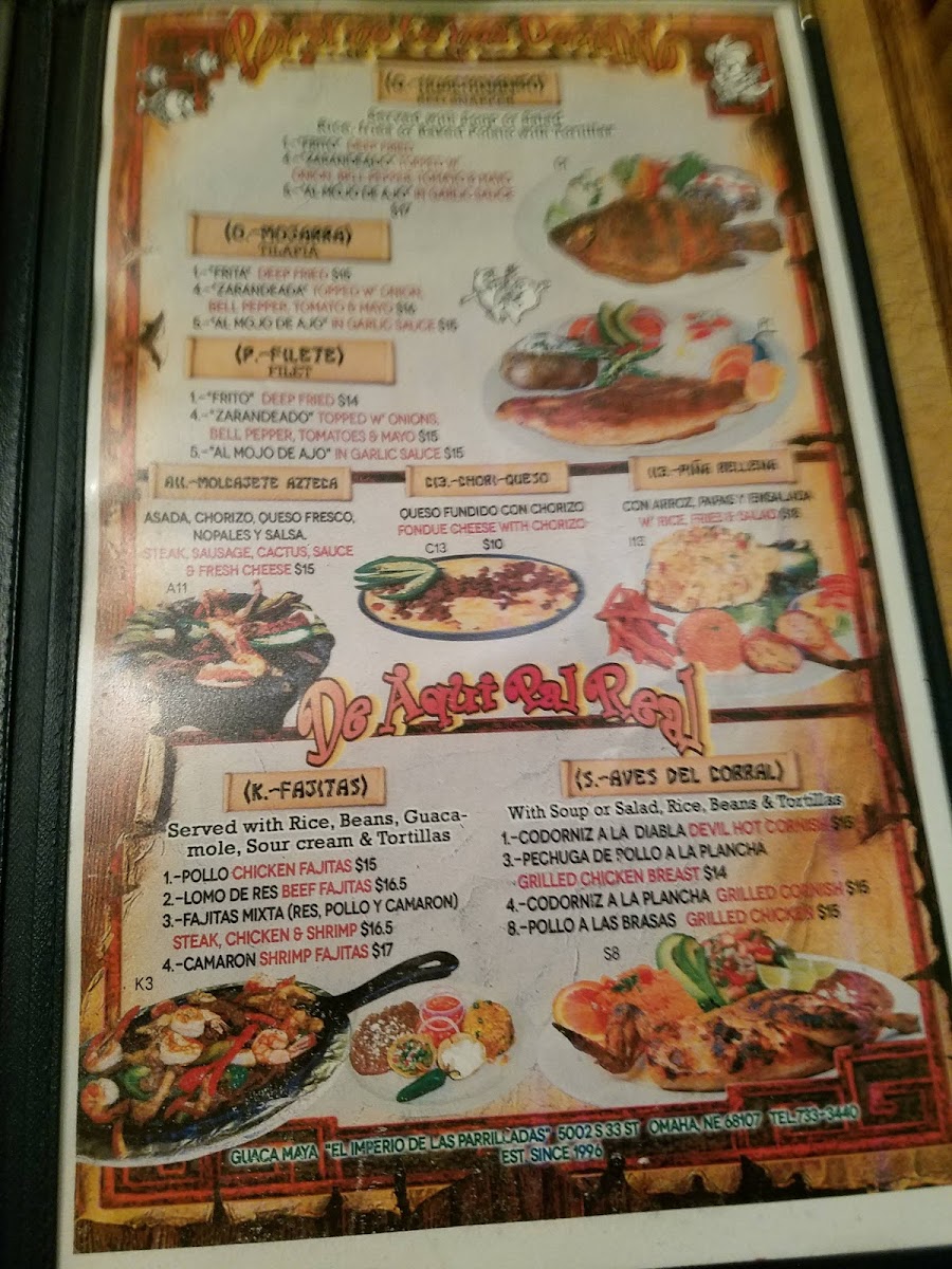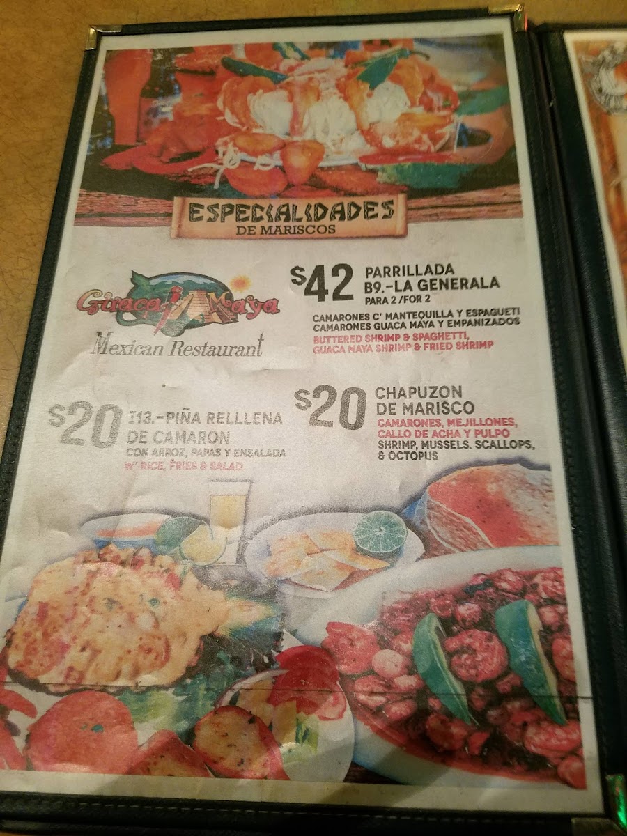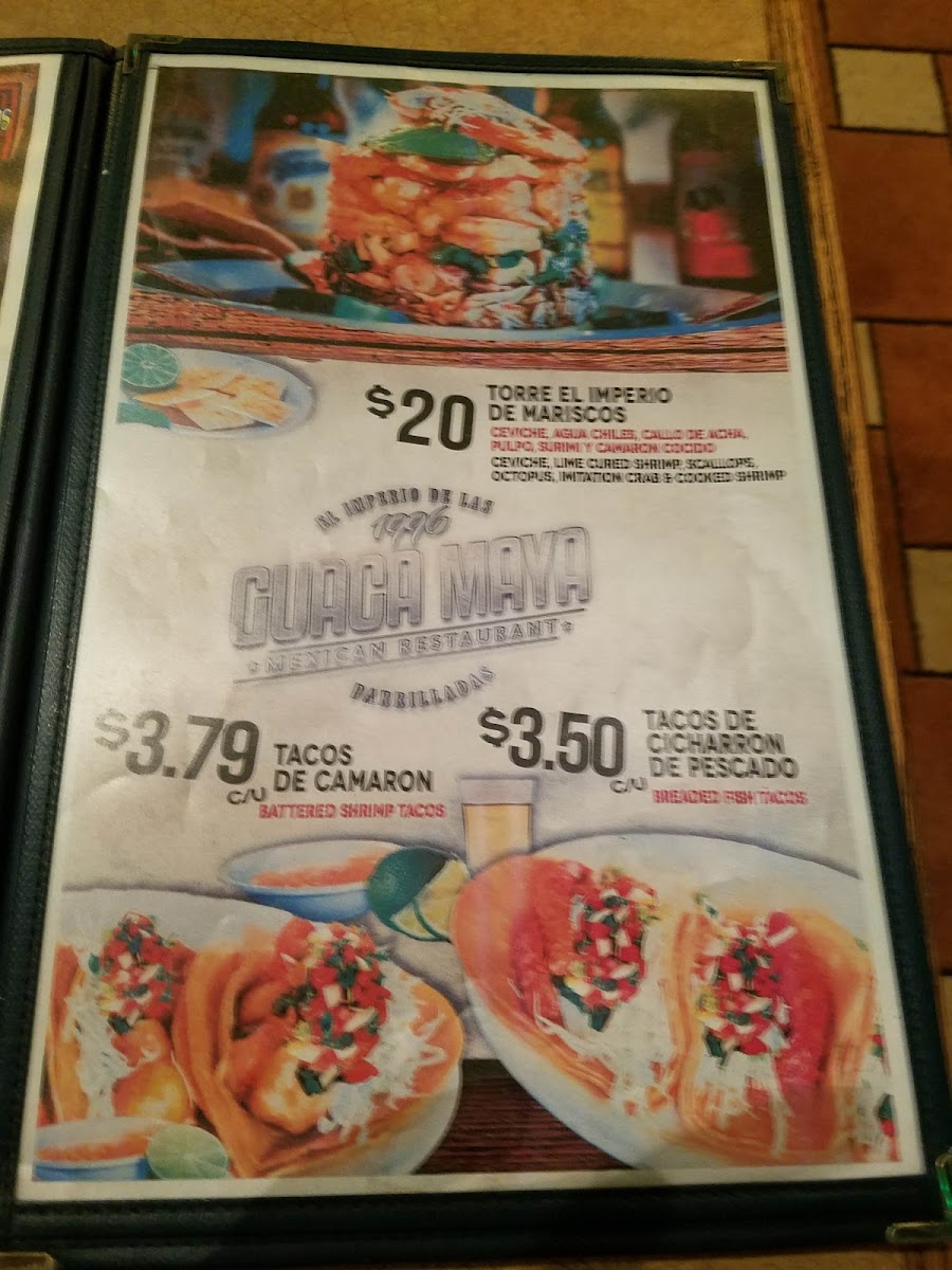 Guaca Maya Menu